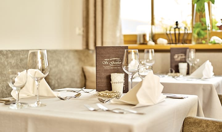 Die 12 verschiedenen Zimmerkategorien, die ruhige Lage, die zahlreichen Möglichkeiten Wellness im Spa Bereich zu erleben, das vielseitige Anwendungsangebot und die kulinarischen Highlights machen das Hotel St Gunther zu einer der Adressen für Erholungssuchenden. Darüber hinaus liegt dem Gastgeber der Umweltschutz sehr am Herzen, was sich in z. B. der Verwendung nachwachsender Rohstoffe widerspiegelt, um eine Erholung mit gutem Gewissen zu ermöglichen.